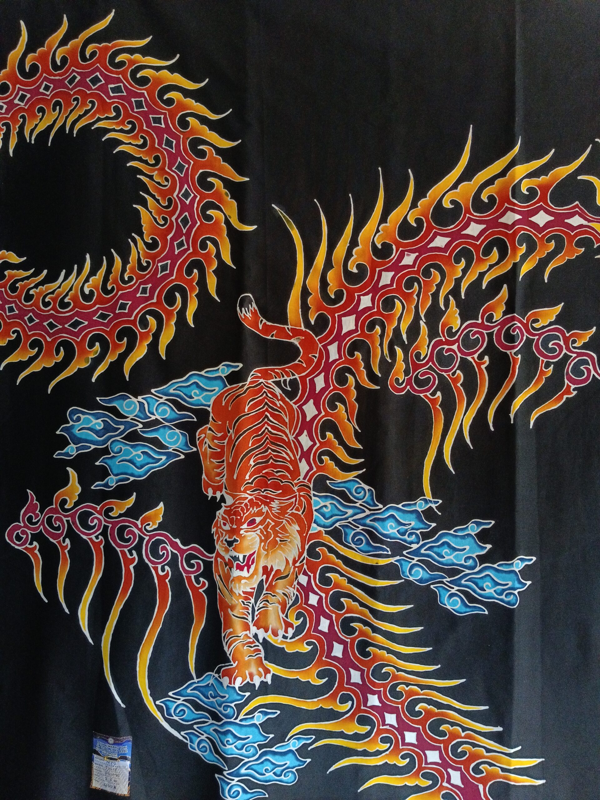 Batik tulis gagah bermotif Macan dan Naga yang melambangkan kekuatan, dikombinasikan dengan sentuhan awan Mega Mendung serta kobaran api yang artistik.